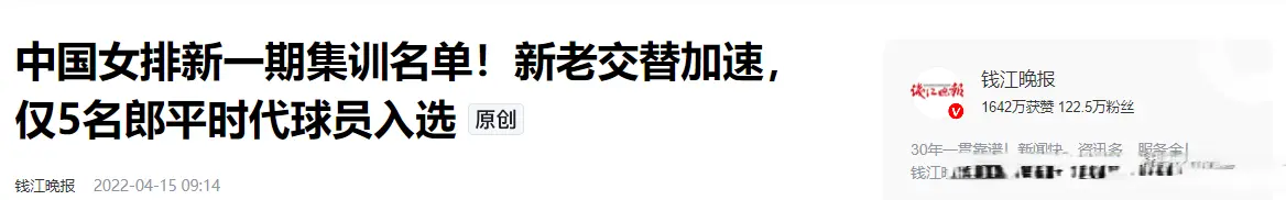 钱江晚报——中国女排新一期集训名单!新老交替加速,仅5名郎平时代球员入选